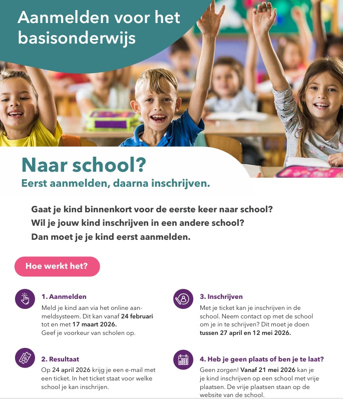 Iedereen die zijn kind wil inschrijven in een kleuterschool of lagere school in Eeklo voor schooljaar 2026 - 2027 moet zich eerst aanmelden via het centrale aanmeldsysteem.